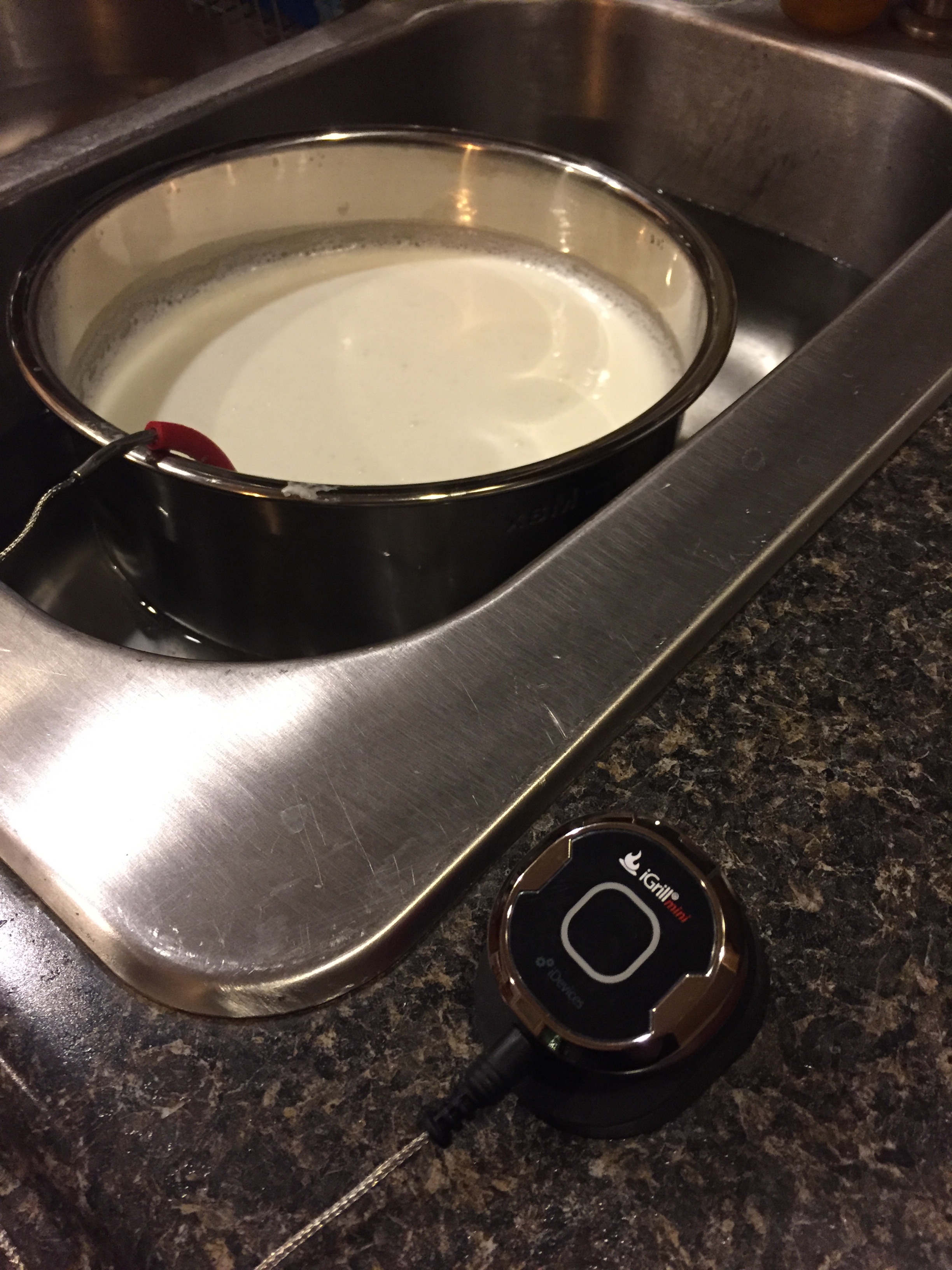 Once it’s 180-185, place pot in a cool bath of water (not ice, just cool water).