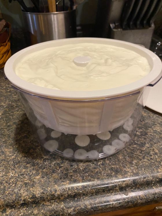 Place the pot back in Instant Pot and hit yogurt till it shows 8 hours.  Put the lid on and walk away.