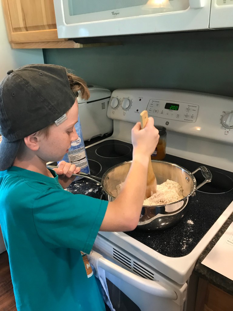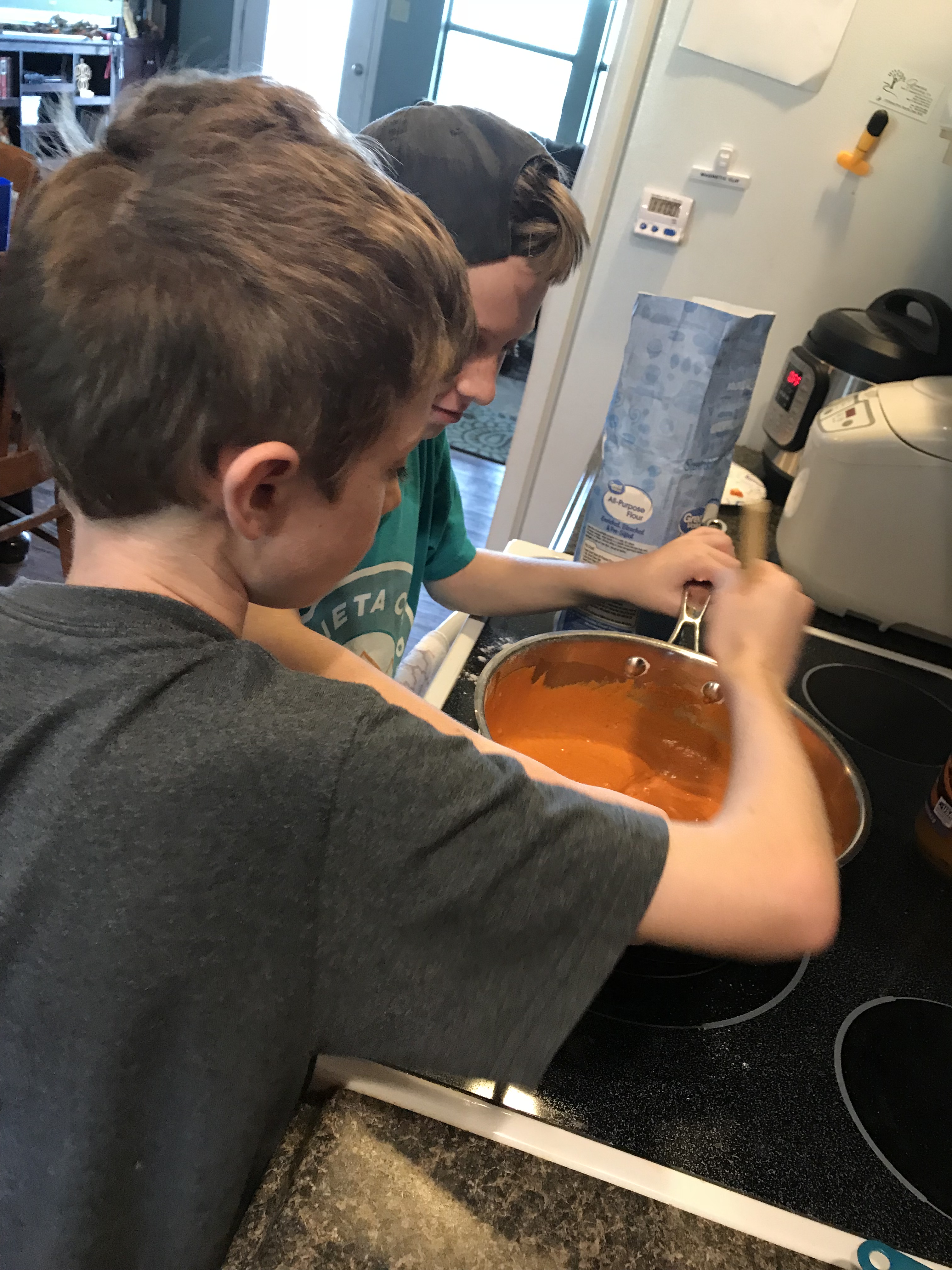 So today I decided to make some pumpkin spice playdough! It’s so fun and easy and the boys did the majority of the work.