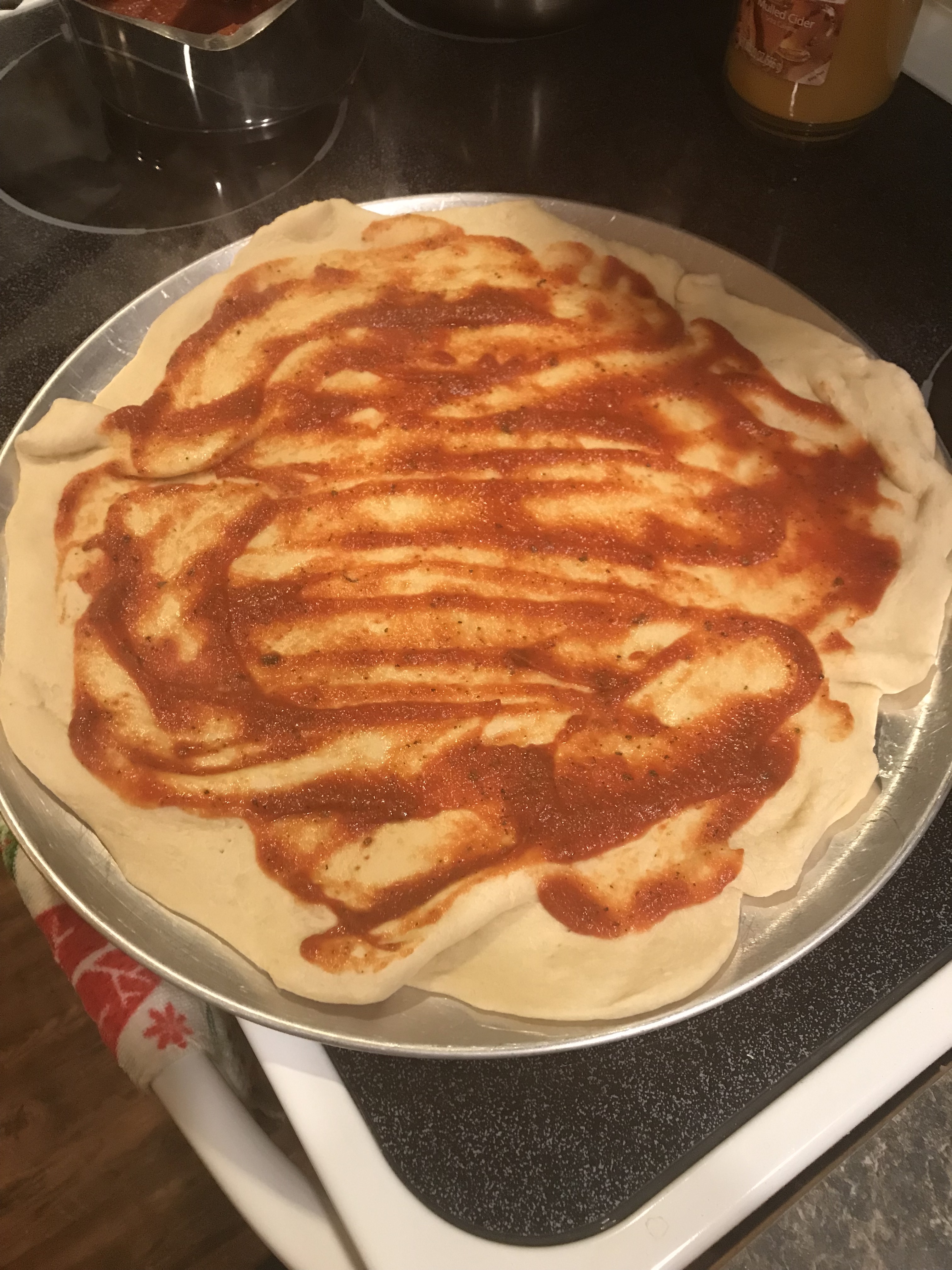 I actually prefer a thicker crust so I use this as one crust instead of two. Robert prefers thinner crusts so sometimes we do that. So when I make two pizzas (or if we do small pizzas which we do sometimes), I make two batches.
