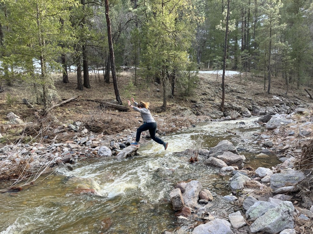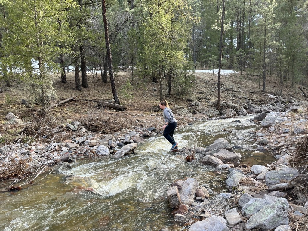 Sunday afternoon we went on a hike. It was beautiful and challenging. We had to cross the rushing creek multiple times and had to work together to problem solve to get across. I absolutely loved this. It was one of my favorite parts of the trip. Towards the end, I went to jump from one rock to another, and I missed with my right foot and stepped right into the creek. It was cold (this is melted snow), but so funny!