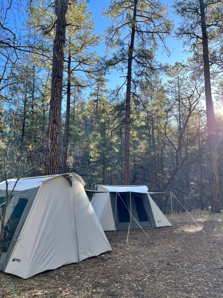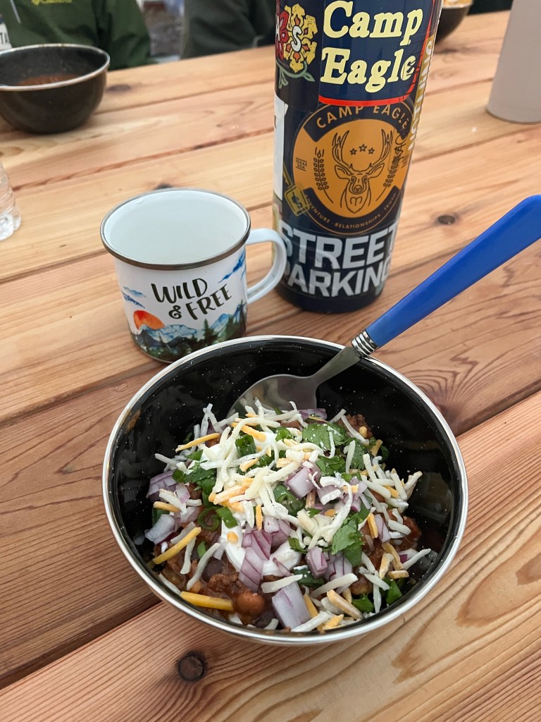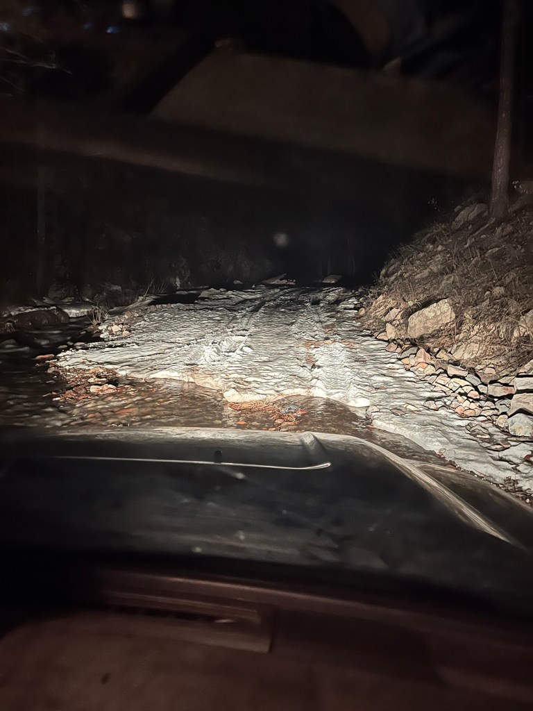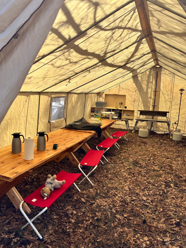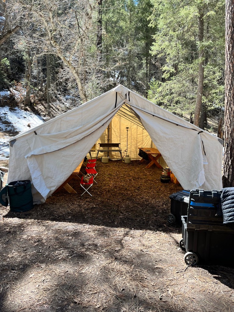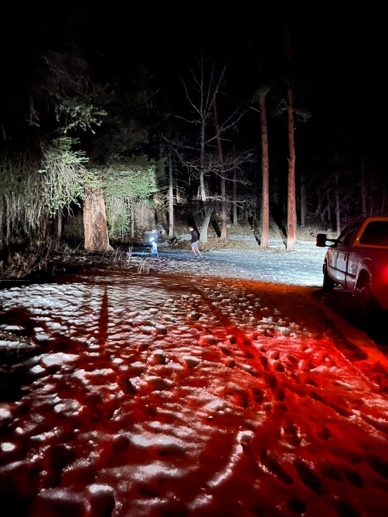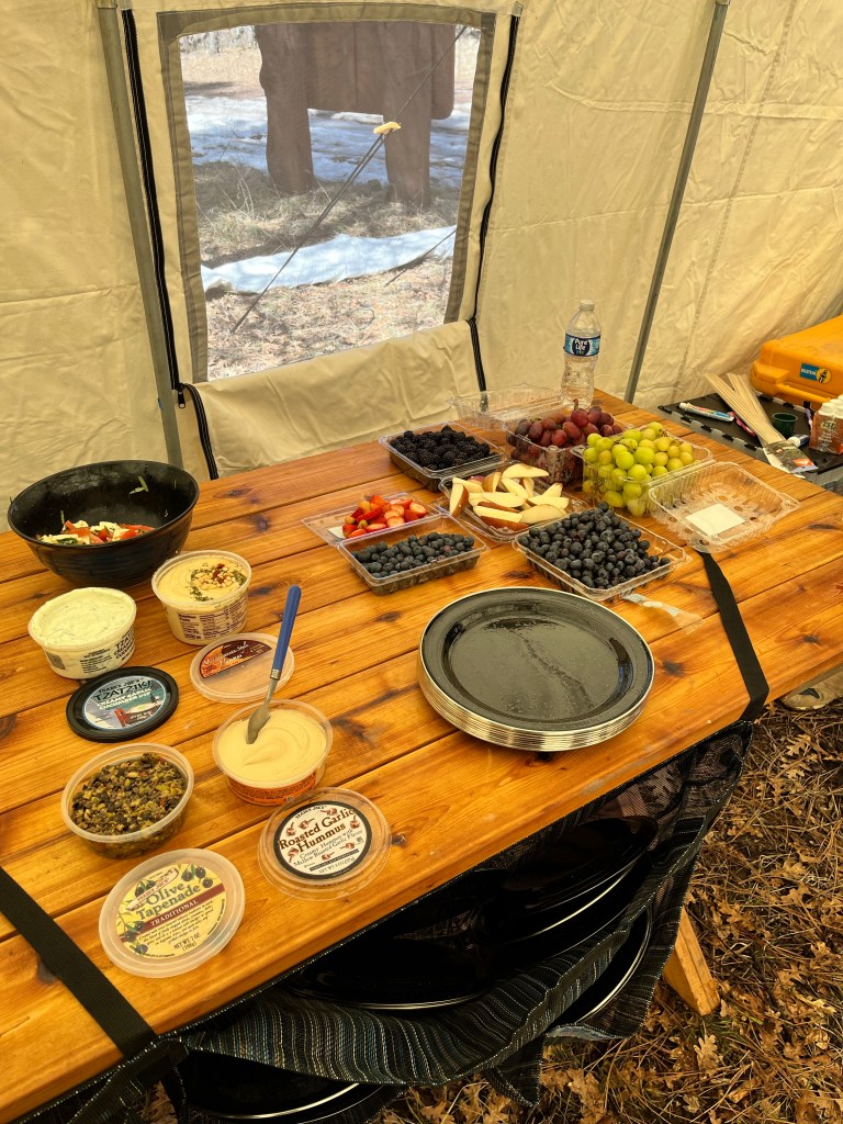 When we got there, we stepped out into a lot of snow. We had to pick a different part of the campsite than we were planning because it was dry compared to where we had landed initially. It took a bit to get tents set up because it was midnight when we started and we were freezing and exhausted. It was in the 20s by that point.