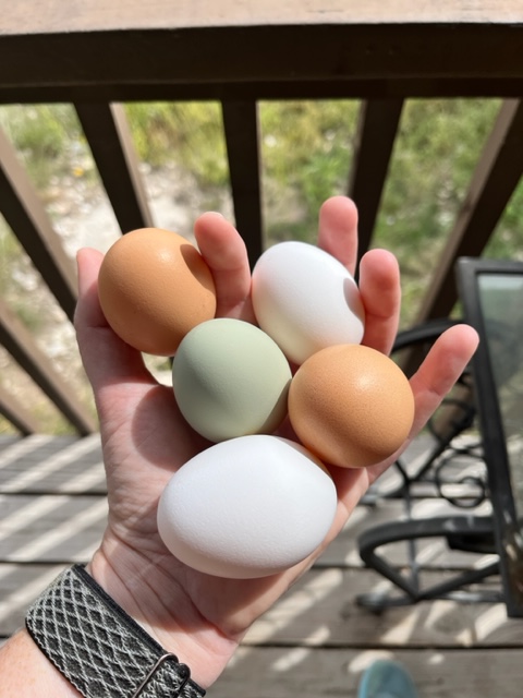 We have 15 chickens at the moment. Twelve of them are laying eggs at the moment. We are still waiting for 3 of my Easter Eggers to start laying!