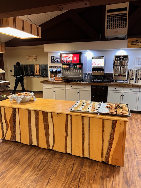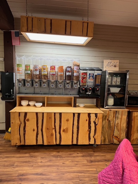 This is the inside of the dining hall. There is a constant supply of coffee (and cereal haha). They use a local coffee roaster!