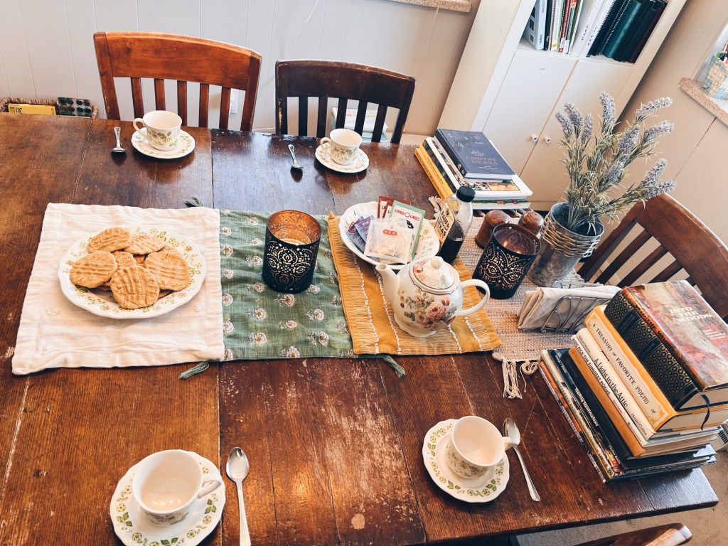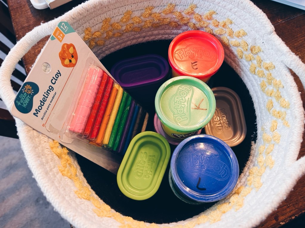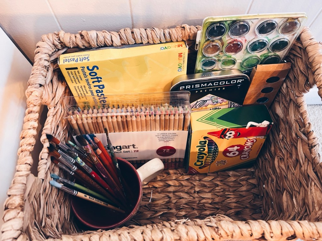 We did poetry teatime yesterday instead of today because I was just feeling it. I made peanut butter cookies, the kids drank hot chocolate, and I drank lavender honey tea. I gathered our art materials into a basket (I need more), and the fidget materials are in a basket.
