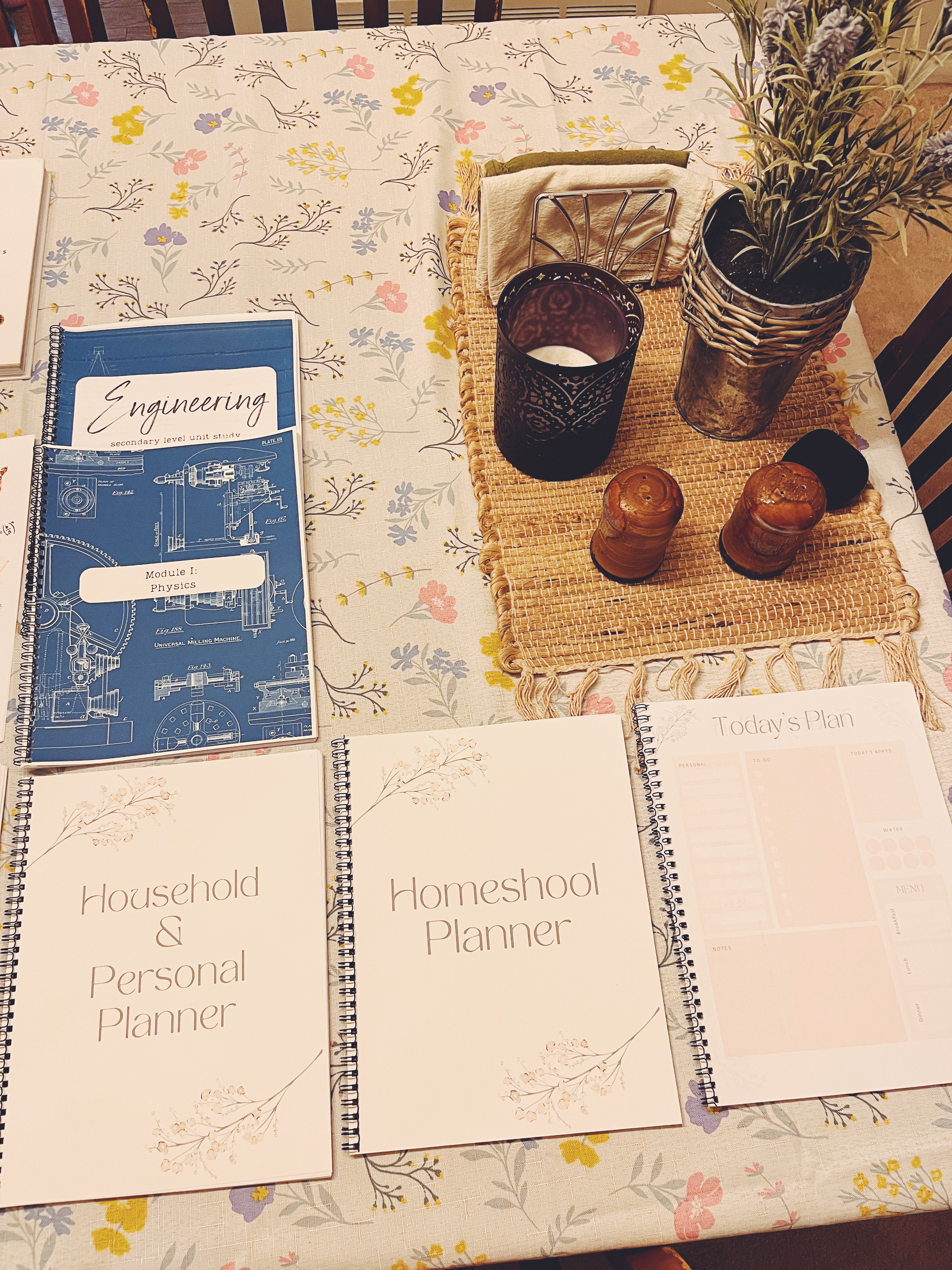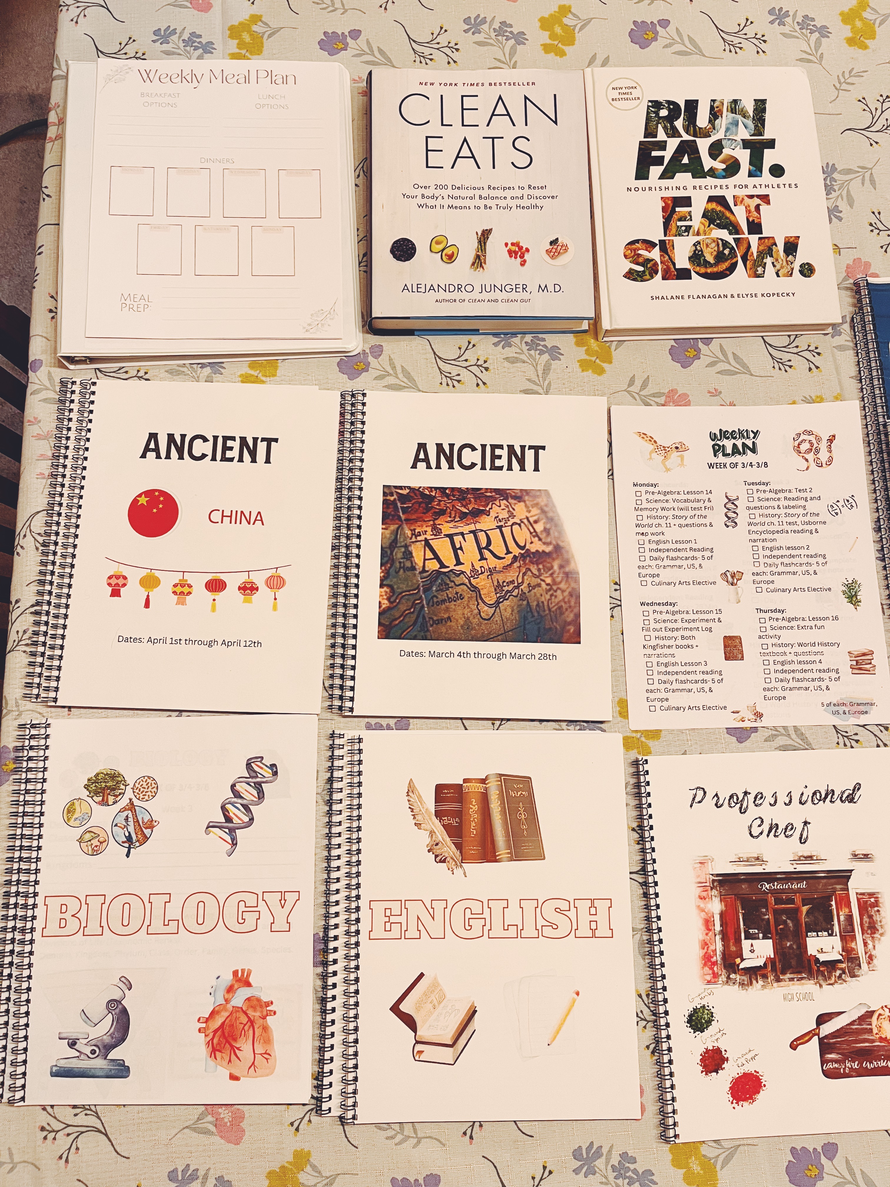 I’ve created curriculum for the boys for the next several weeks using multiple resources. I LOVE making my own curriculum. I never feel good about any of the purchased stuff as is… so I have decided to make it work for us. This isn’t everything… and those top books are just what I was using to meal plan. The Professional Chef and Engineering curricula were purchased and just printed and bound. Karis’s curriculum isn’t pictured, because she still had some for a bit. I’m working on hers now. I will be doing a “series” on how I create my curriculum soon. I have been posting about it on Instagram as well!