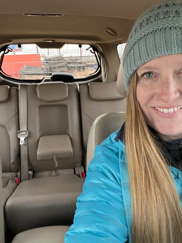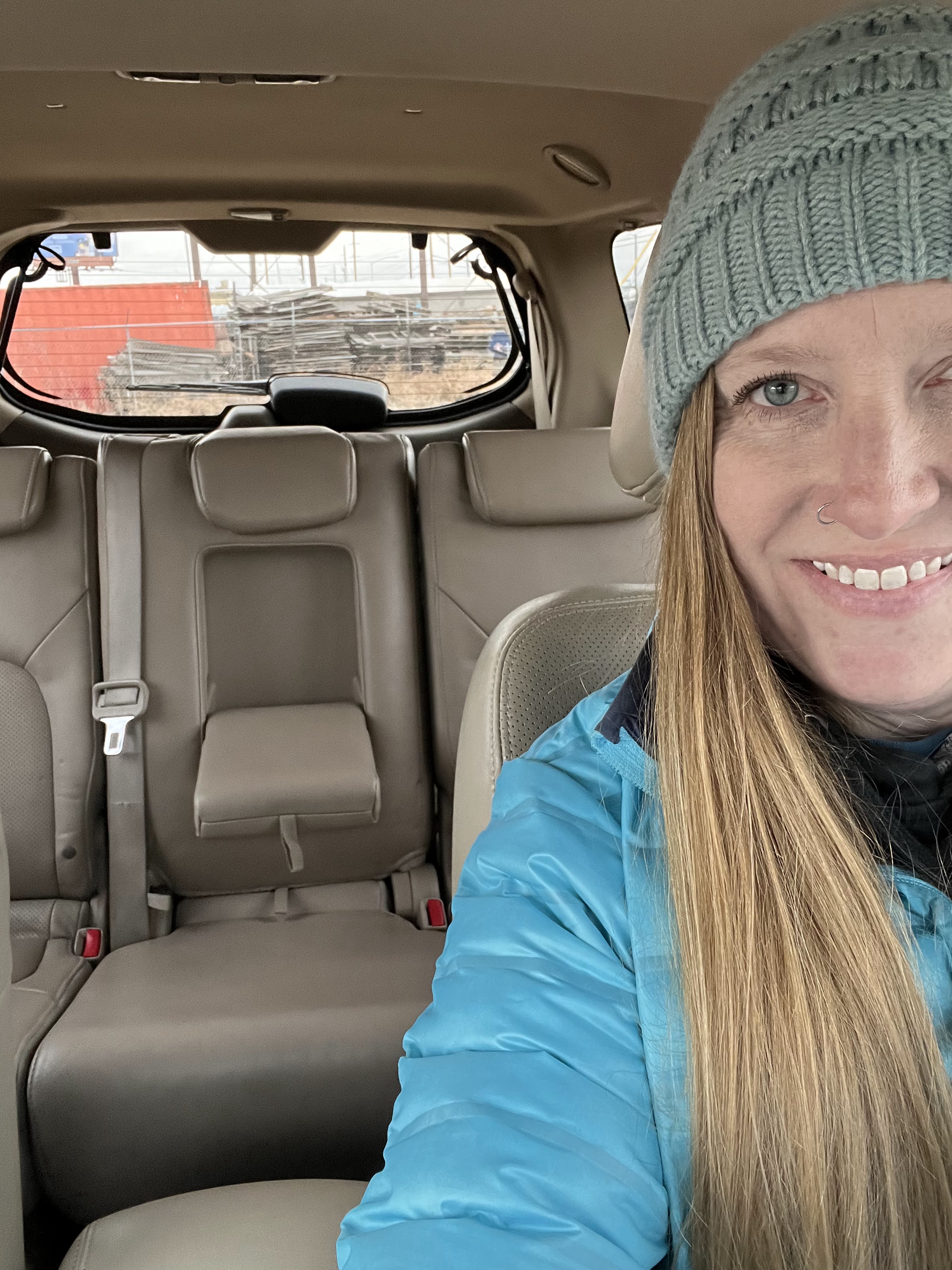 We also got a new-to-us car! We paid cash for a 2008 Nissan Pathfinder. It has low mileage for the age, and the car is in really great shape. It has a third row, all leather, 4WD, is very clean, heated steering wheel and seats, and when we looked it up through Carfax, we noticed that it was very well taken care of with all of the maintenance accounted for. The third row is folded down under the mound of mats in these pics. I have since put the mats in the car and folded the third row back up. The books just need to go back to the library. They’ve been going from car to car. Haha.