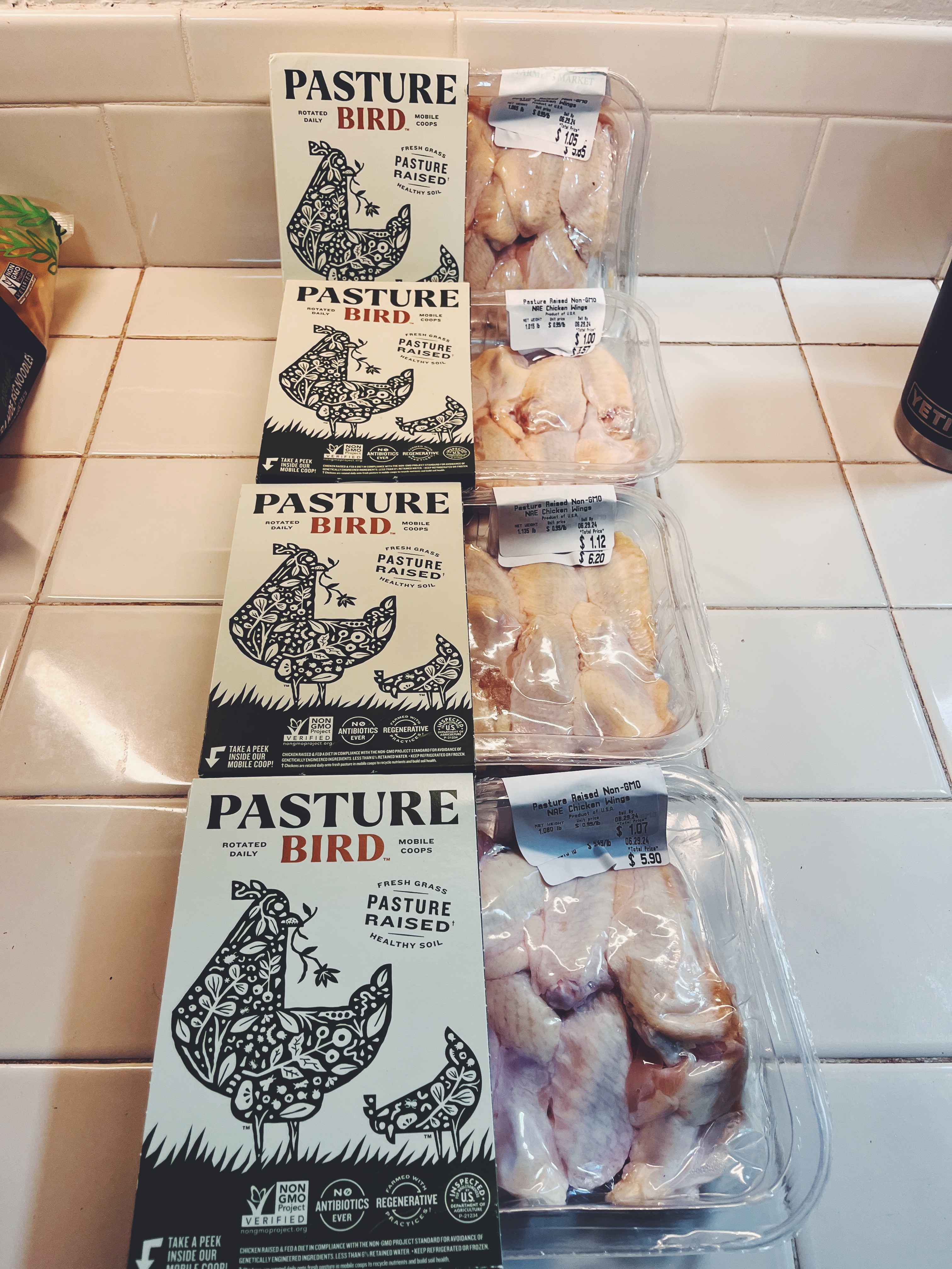 Yesterday I went to Sprouts and spent $103 for a lot of food. Not only were several things really on sale, there were some pastured chicken wings for about $1 per package. So I got 3 packages for a little over $4 (it would have been over $25 normal price). The milk (low-temp pastured/grass-fed) was really on sale as well.