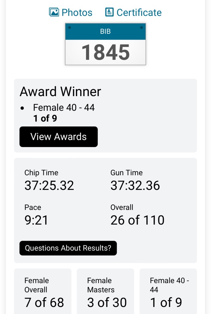 Today I ran a 4 mile race in 37:25 (9:21 min/mile) and placed first in my age group! I am honestly still on cloud 9 about it. I got second place in my age when I did my 5k in May, but this feels different. Not only did I get first, I also had a MUCH better pace despite it being a longer race. I have been struggling a bit with consistency these days, but I’m obviously growing!