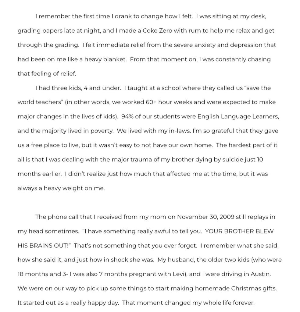 I had tried to quit drinking on my own for years because “I’m not an alcoholic” was a common thing to come out of my mouth. I thought I could cut back or quit on my own. How often do you see a homeschooling Christian mama go to rehab? Probably more often than you think. Addiction isn’t picky. I realize now how arrogant I was to think I was good or better because of being a Christian homeschooling mama… and somehow that made me different than anyone else in rehab. It didn’t. Addiction is a beast!