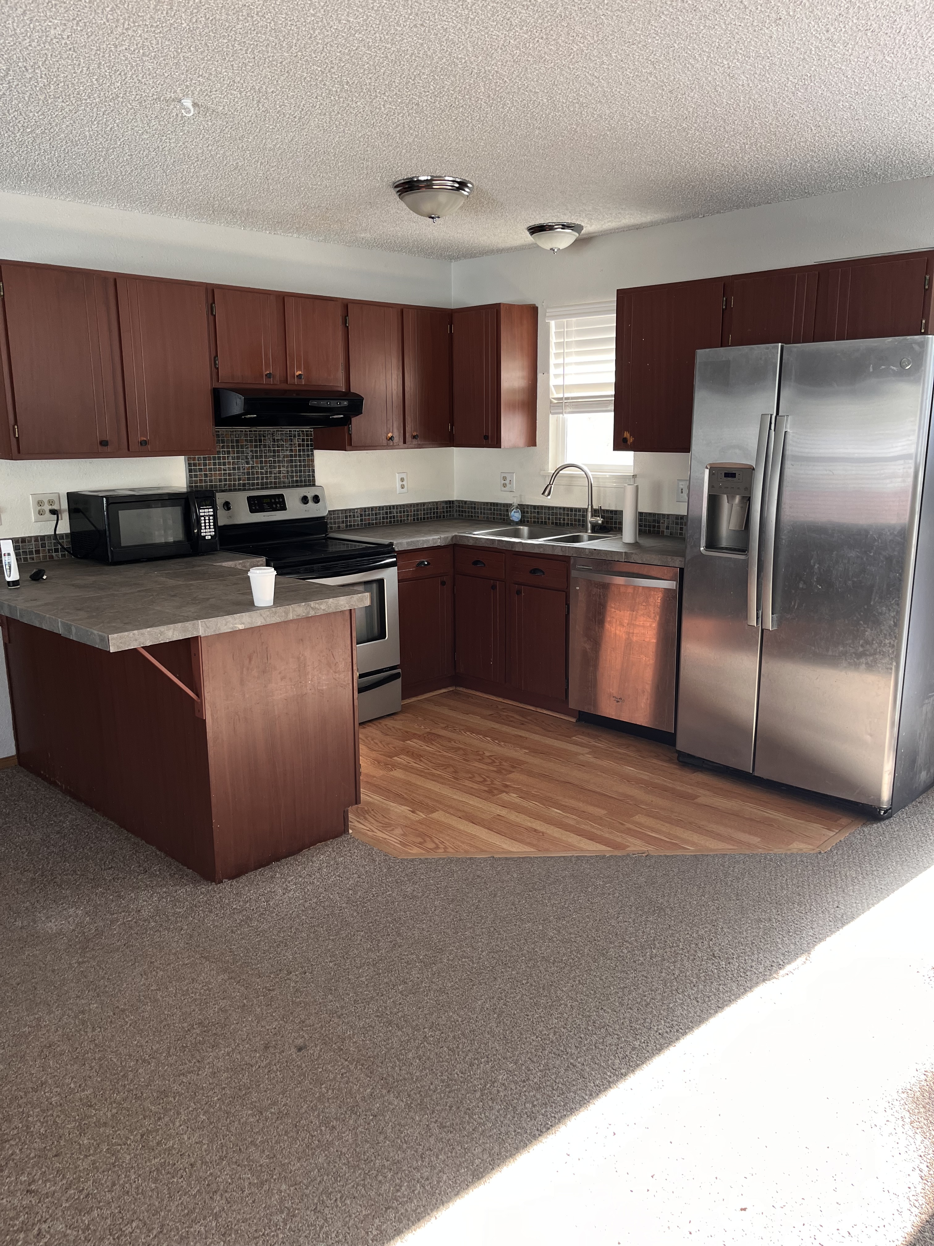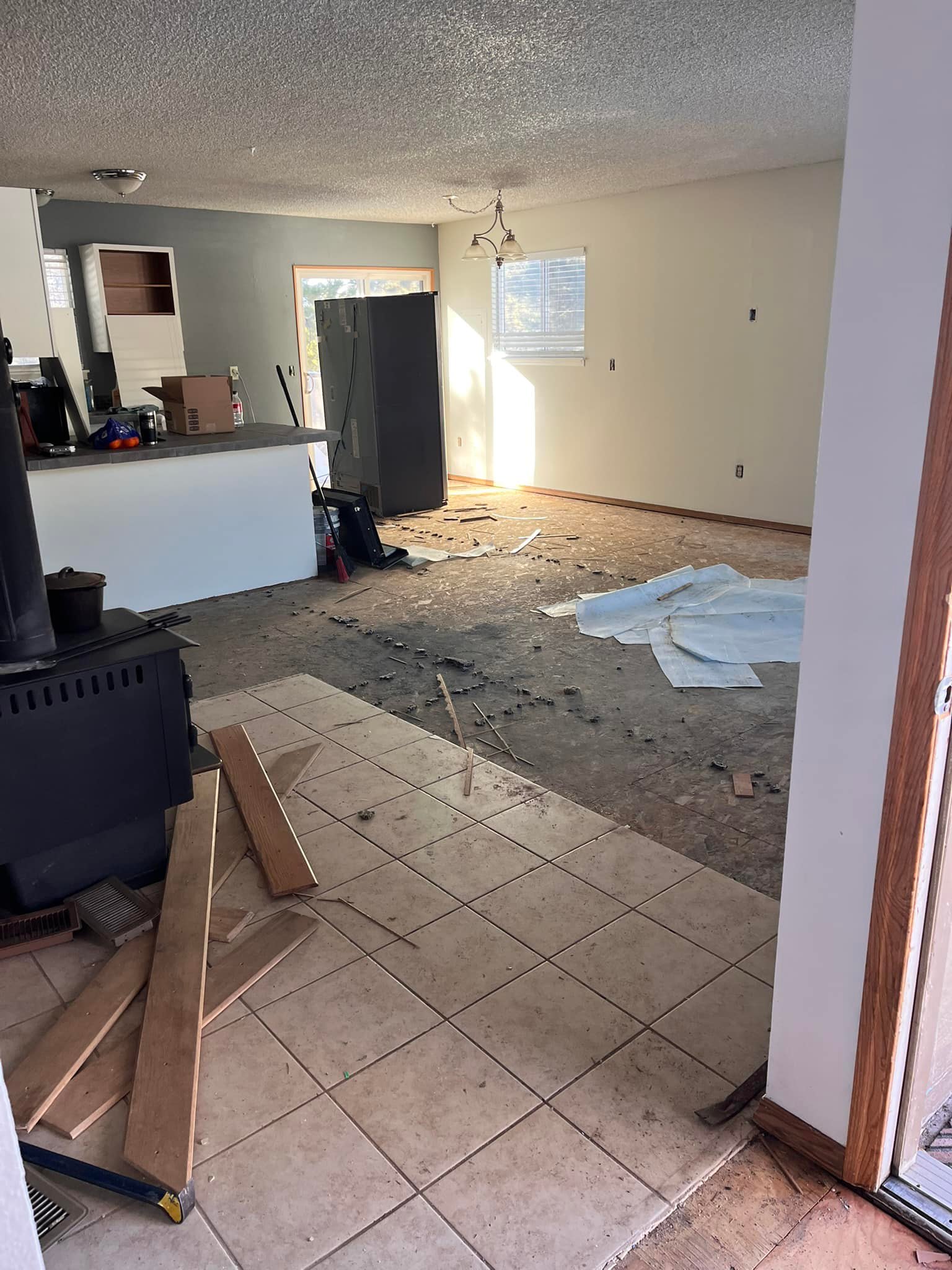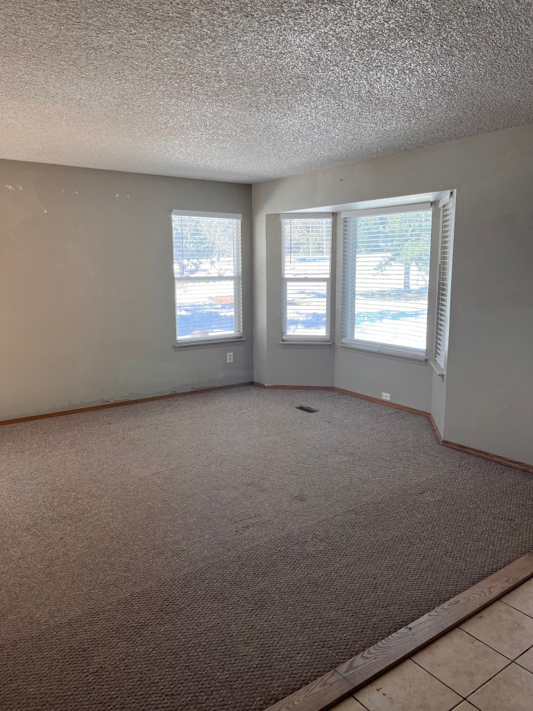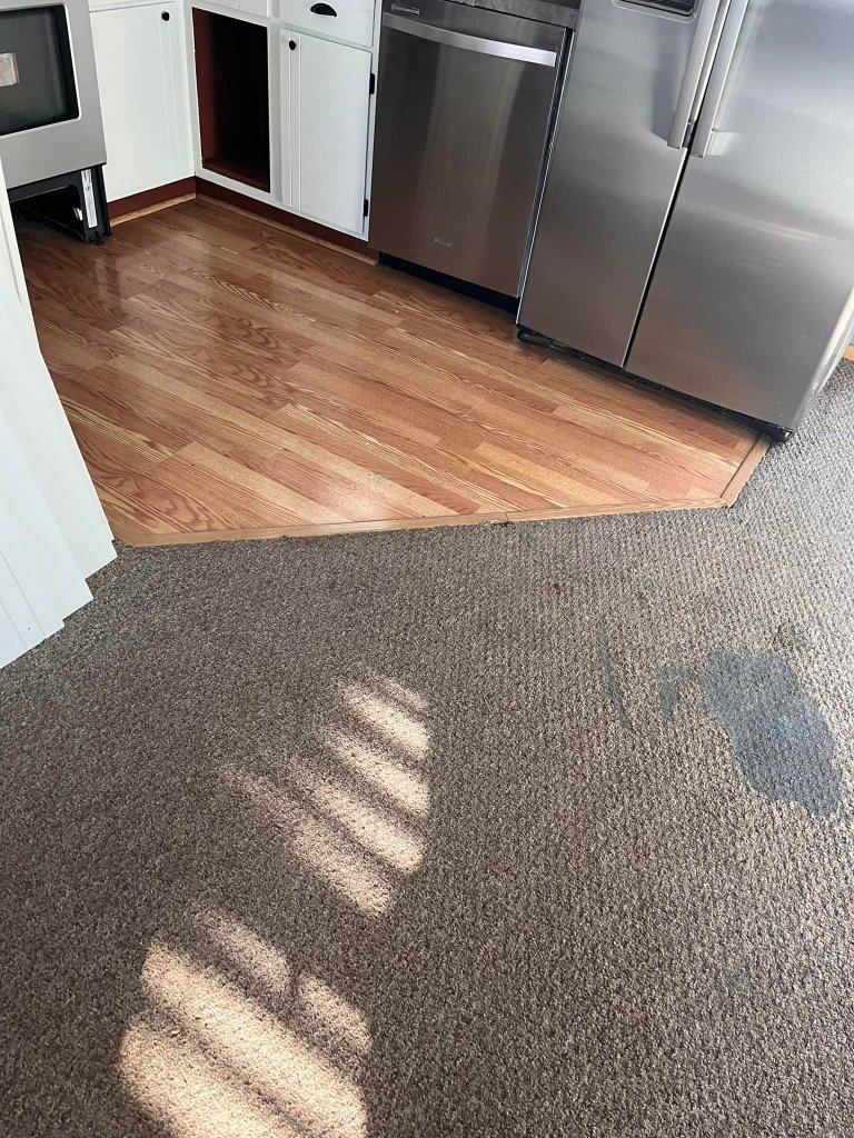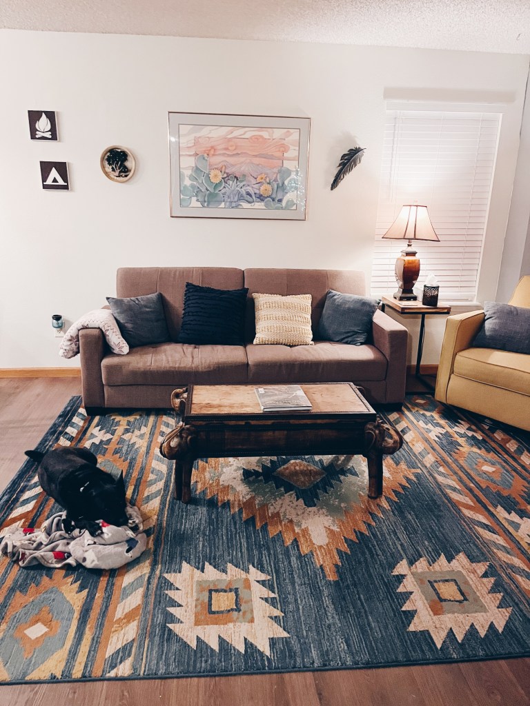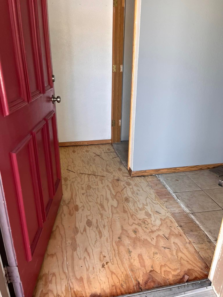That weekend, we painted the whole living room, dining room, and kitchen (including cabinets). Robert accidentally spilled paint on the carpet in the dining room. We were going to replace the flooring in the dining room and kitchen because of that, but our director told us to just replace the flooring in the whole upstairs (except for the bedrooms) because the flooring was super old anyway. So, that was the next step. Robert spent hours and hours replacing the flooring, and it looks amazing!