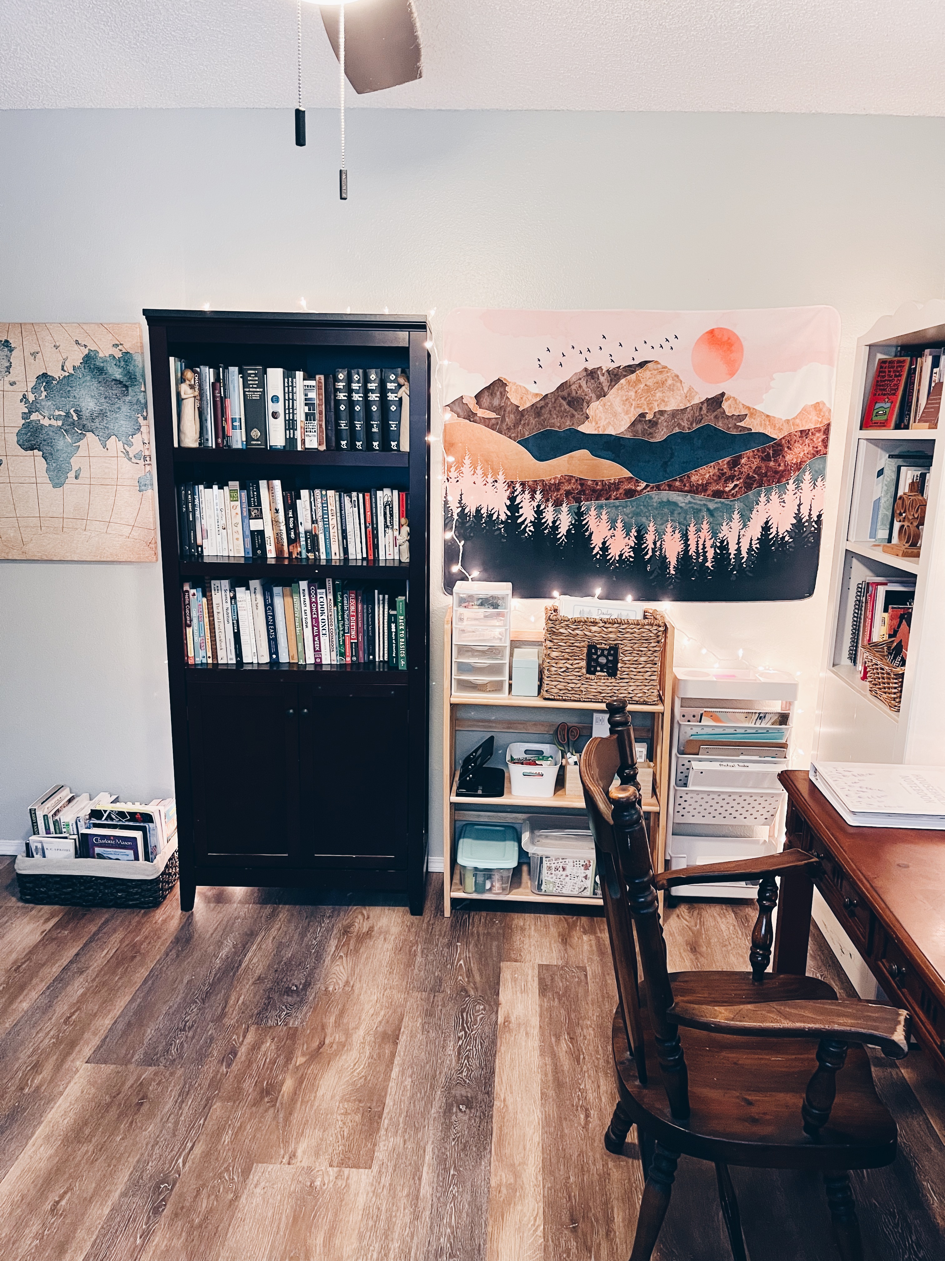 We still need to put the daybed together in the guest room, buy mattresses, and buy bedding. That is not an immediate concern, so it’ll happen eventually. The kids have unpacked and organized their bedrooms as well, but I probably won’t share pictures of their rooms. I am still trying to figure out how to make my gym work in a smaller space, and we have work to do in the downstairs living room still. These things will happen slowly!