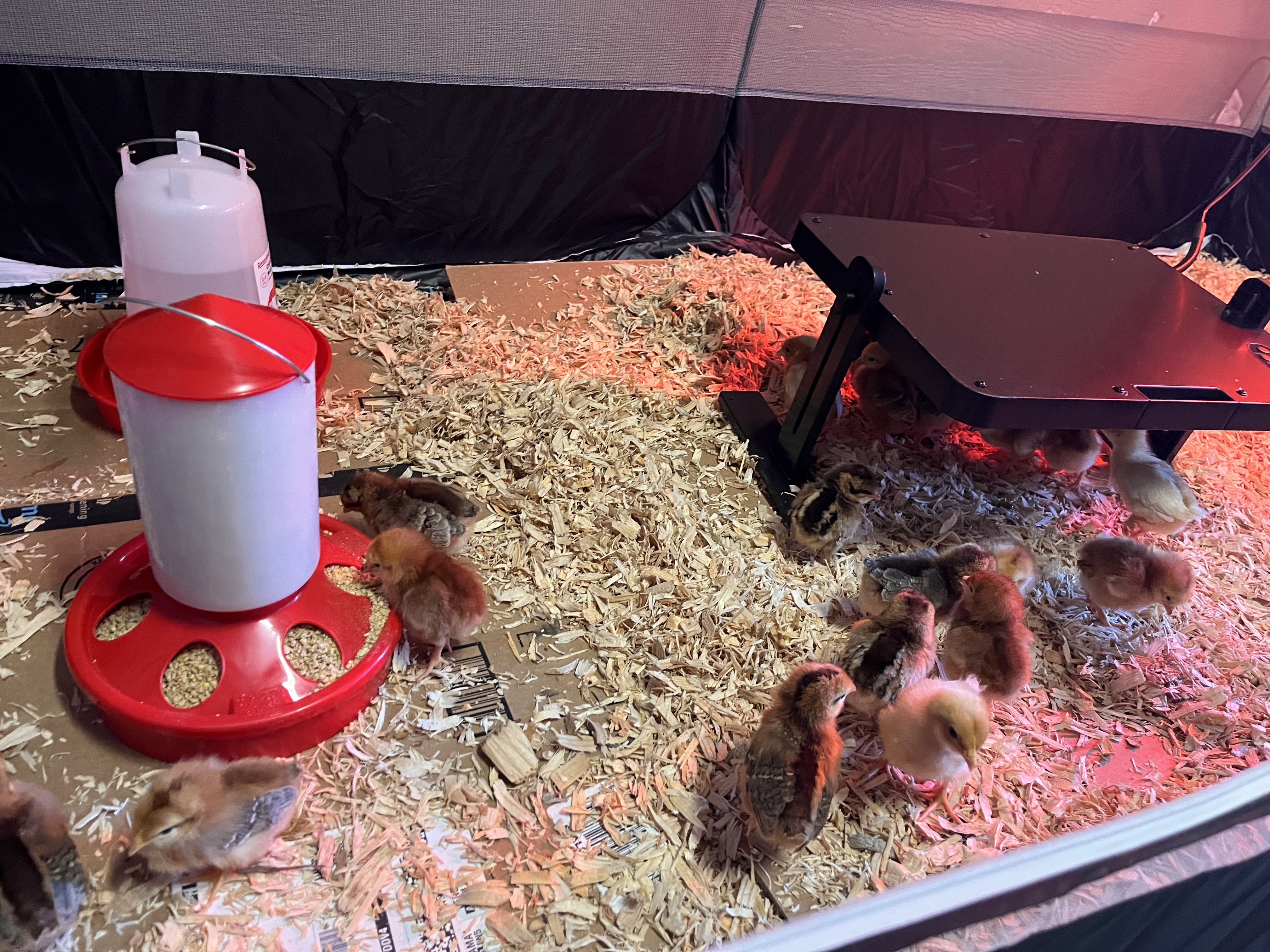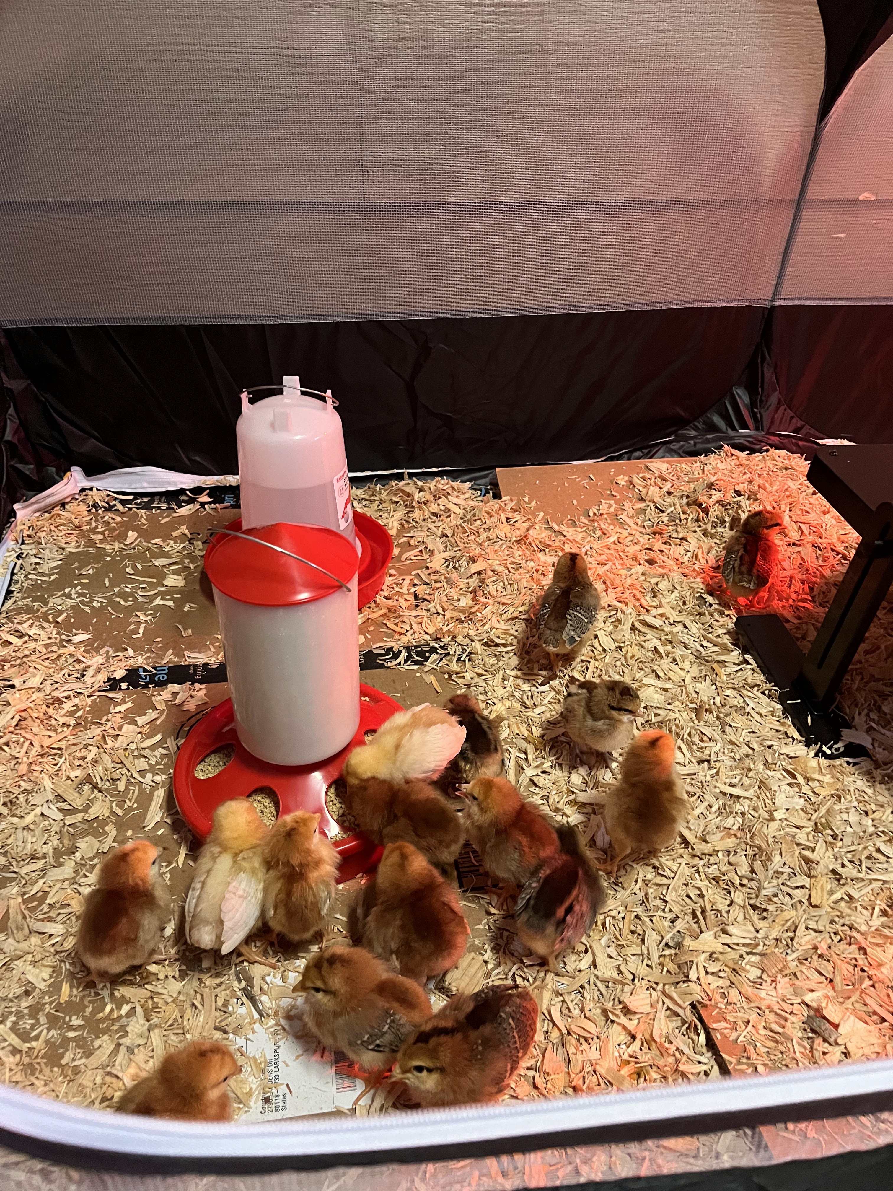 I have 21 baby chicks currently, and when they are big enough, we will move them into a huge shed-turned-coop. We have some work to do on it to make it a coop!
